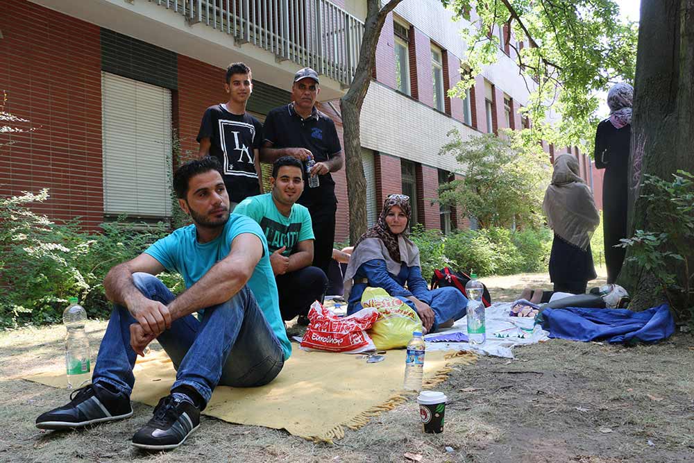 »Was von unserem Leben in Berlin erwarten? Keine Ahnung. Woher sollen wir das wissen? Wir möchten in Sicherheit leben und eine fantastische Familie sein. Jetzt warten wir auf einen Termin beim LaGeSo. Seit drei Tagen sitzen wir hier. Wir konnten in der Moschee übernachten - dort gibt es keine Duschen, aber immerhin. Jetzt dürfen wir dort nicht mehr bleiben. Wir schlafen heute hier draußen.