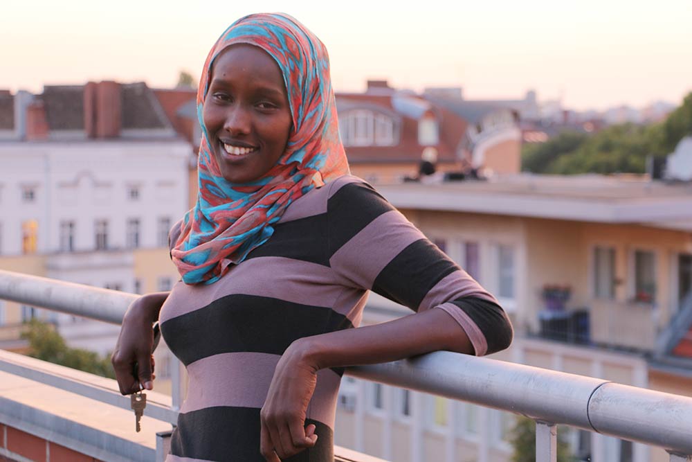 Als ich in Eisenhüttenstadt angekommen bin, habe ich mich wie in einem Gefängnis gefühlt. Da gibt es nichts. Ich bin in Kenia aufgewachsen und habe dort studiert. Ich habe im Flüchtlingscamp Dadaab für die Organisation Terre des femmes gearbeitet. Die setzen sich für die Rechte von Frauen ein. Aus Sicherheitsgründen bin ich nach Berlin geflohen, näher möchte ich darauf nicht eingehen.