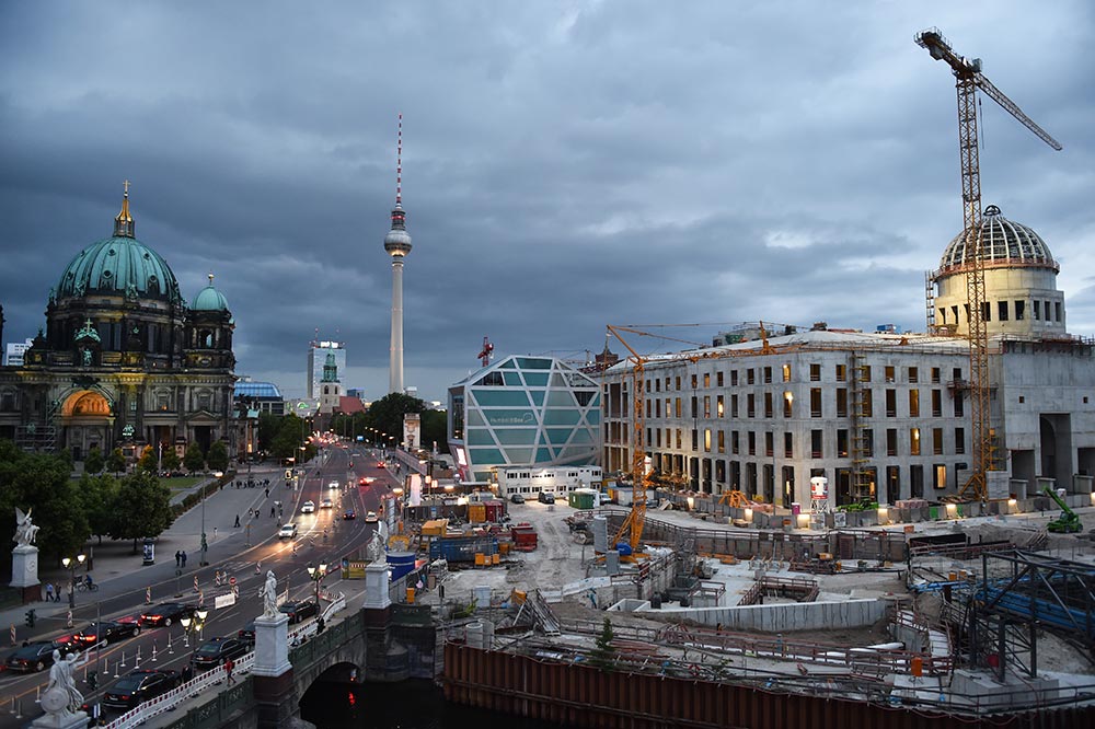 Der BER bleibt eine schön beleuchtete Baustelle, die Eröffnung Ende 2017 ist ungewiss. Die Arbeiten hinken dem Plan drei bis vier Monate hinterher. Foto: Robert Grahn