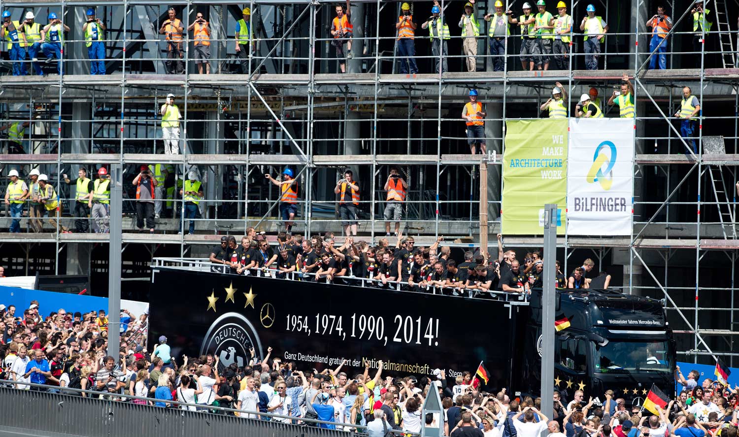 8Große Pause am Bau: Für die Weltmeister ließen die Arbeiter alles stehen und liegen. Foto: Morris Mac Matzen, Reuters
